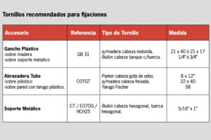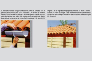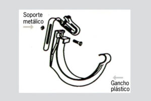 Soporte Metálico para cabio: Se utiliza cuando el cabio queda lejos del filo de las tejas. Se ator- nilla al cabio según la distancia necesaria y en su extremo se ajusta el gancho plástico.