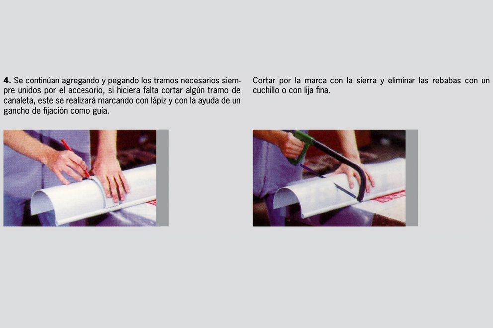 Una vez definida la superficie a escurrir y antes de comenzar la colocación, determinar la ubicación que le dará a cada tubo de bajada para prever la instalación de las distintas piezas como embudos, esquineros, codos, enchufes, abrazaderas, tapas y uniones. Recuerde que el largo máximo de los perfiles de las canaletas es de 3 metros