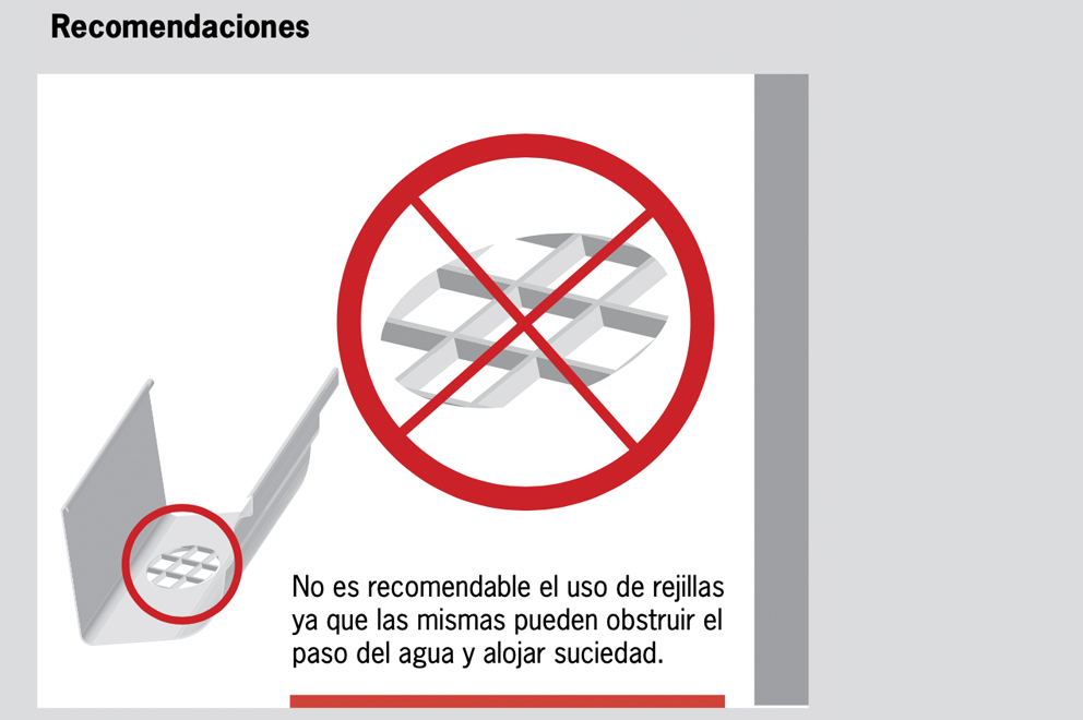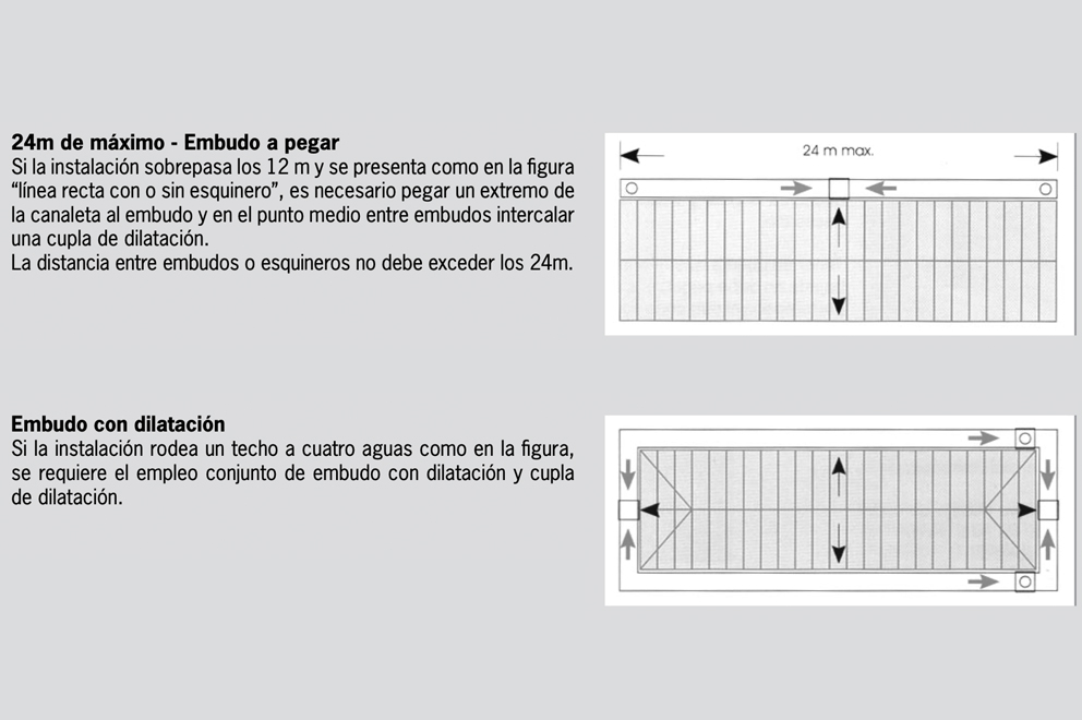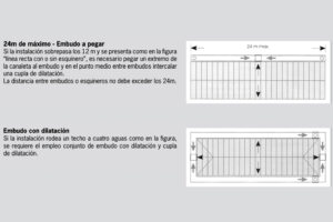 A continuación le damos algunas indicaciones básicas para facilitarle la compra y posterior colocación. Es importante que previamente a la adquisición del material se determine la superficie del techo para definir el número correcto de bajadas.